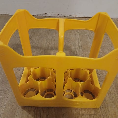 Hyväkuntoinen pullokori, kymmeniä vuosia tyhjän panttina lojunut.