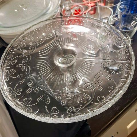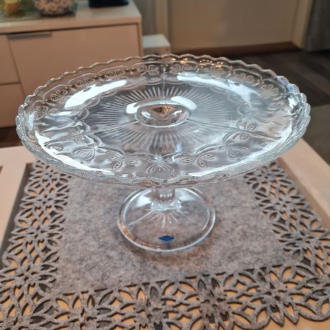 Hakusanat: tarjoiluvati tarjoiluastia tarjoilu kakku lautanen astia lasi kakkulautanen kakkuastia vintage retro jalka apilavati