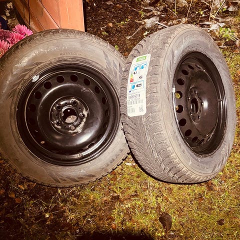 Ok kuntoiset kitkarenkaat 195/65 15. Pintaa jäljellä hyvin.