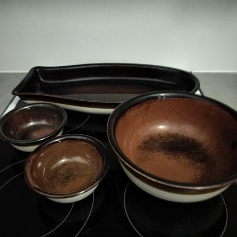 Erittäin hyväkuntoista Kermansavi astiastoa: