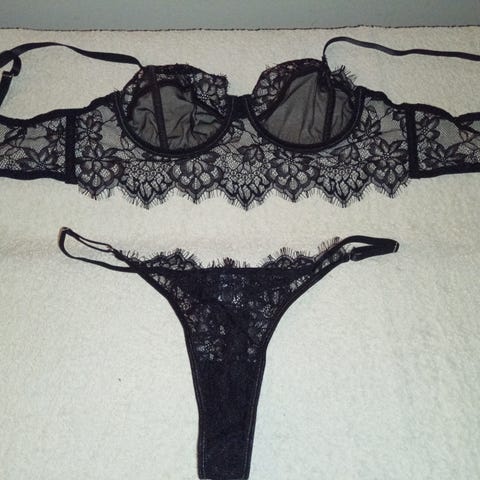 Musta mekko, koko S/M, takana on nauhat joilla voi säätää sopivuutta, edessä ”timantti”koriste, helmassa leveä pitsi.