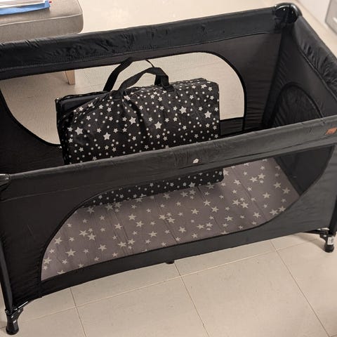 Emma matkasängyn musta lisäpohja (pienelle vauvalle).