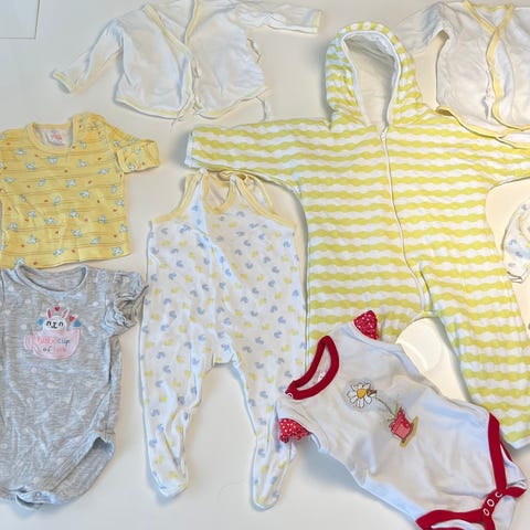 Myydään vauvanvaatteita, setissä 3 kpl:tta pitkähihaisia paitoja, 2 kpl:tta lyhythihaisia bodeja(tytölle), 2 kpl:tta potkuhousuja, 2 kpl:tta pitkähihaisia bodeja, 6 kpl:tta housuja(kaksi sukkahousua) ja 2 kpl:tta kietaisupaitoja. Kaikki on pesty hajusteettomalla pesuaineella. Hp:8 eur/koko setti. Seinäjoki.