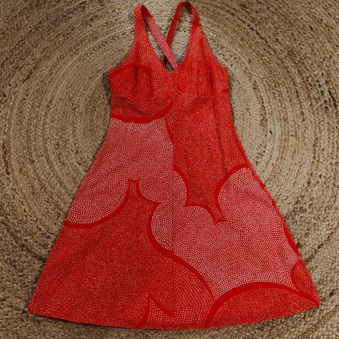 Tummansininen valkopilkullinen lyhythihainen Karoliina Finland vintage viskoosipaita. Koko 40.