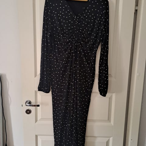 Musta-valkoinen Nanson mekko, V-pääntie ja 3/4-hihat. Pehmeä ja joustava materiaali (puuvilla-modali-elastaani).