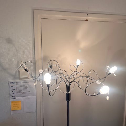 upea puurunkoinen lattiavalaisin hapsuvarjostimella kuvan mukainen 65e