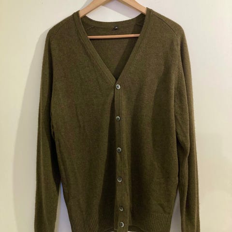 Tumman vihreä Mujin villaneule M-koossa. Istuu normaalisti ja siistissä kunnossa.