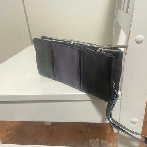 Lumi nahkainen lompakko mustassa värissä, valmistettu tekonahasta. Sopii unisex-käyttöön. Lompakossa vetoketjusulku ja sisätilat korttien ja pienten esineiden säilytykseen.