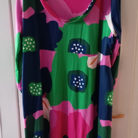 Mukavan joustava sininen farkkumekko, koko 52. Kainalo-kainalo 59cm, olka-helma 90cm