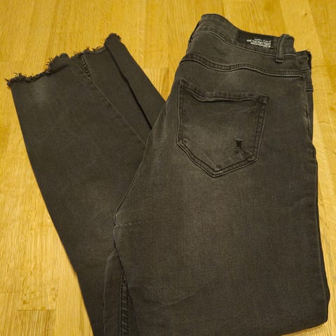Hyväkuntoiset (en tiedä onko käytetty lainkaan) Smithys farkut siniset suoralla lahkeella. Farkut ovat ehjät siistit eikä kuluman merkkejä. Farkkujen materiaali on 77,5 % puuvilla, 21 % nylon ja 1,5 % lycra. Farkkujen koko 27, lahkeen pituus haarasaumasta n. 79 cm, korkeus etu haara-vyötärö n. 28 cm, taka haara-vyötärö n. 37 cm.
