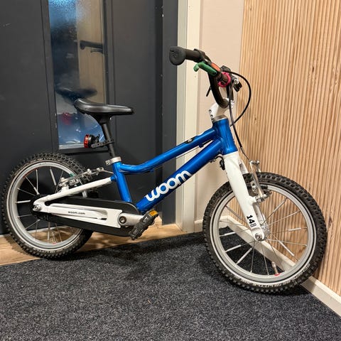 Erittäin hyväkuntoinen Woom 6 lasten sinivalkoinen polkupyörä, jossa 26 tuumaiset renkaat. Lisävarusteena hommattu lokasuojat ja seisontatuki. Kuvista jäi epähuomiossa pois pinnoihin asennettavat heijastimet. Pyörässä on kevyt alumiinirunko, joka kevyt polkea. Heti valmis ajoon.