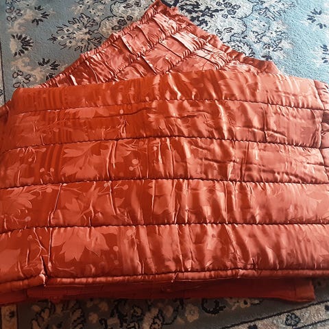 Familonin retro täkki. Tahraton, pesty. Muuten ehyt, etureunan kankaassa kulumaa.
