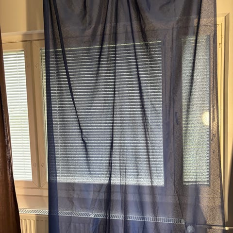 Vaaleansiniset / tummansiniset / beiget kuviolliset uudenveroiset verhot 2kpl.