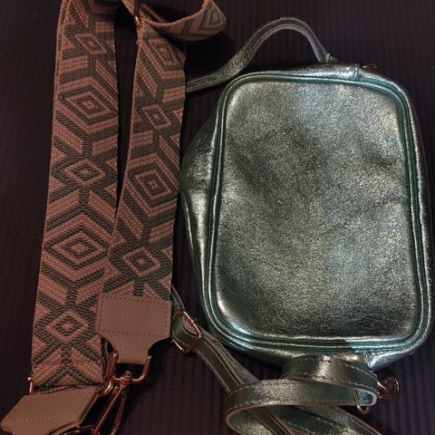 Etsystä tilattu nahkahihna. Pituus noin 128 cm. Leveys 2 cm. Aitoa nahkaa. Tämän oli tarkoitus tulla LV:n laukkuun mutta olikin liikaa värieroa. Mukaan myös 2 kpl kullanvärisiä klipsejä. Jos haluaa nämä klipsit hihnaan kiinni, pitää käyttää suutarilla. Yhden klipsin pituus n. 3,5 cm. Hihnan toinen puoli vaaleampi ja erilainen pinta (sama mitä näkyy hihnan yläreunassa)