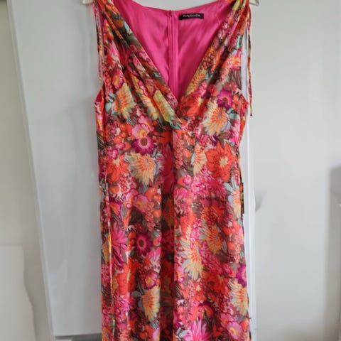 Mustavalkoinen hyvin laskeutuva mekko mahdollisesti polyesteria. Ostettu Haloselta.