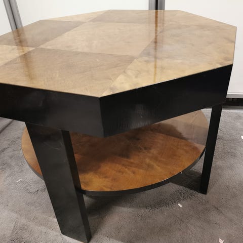 Tupakkapöytä/sikaripöytä/mutteripöytä lasilla. Lasissa pieni vika joka on ollut kymmeniä vuosia eikä ole suurentunut. Meillä käytössä nyt kukkapöytänä eli suoraan käytöstä.