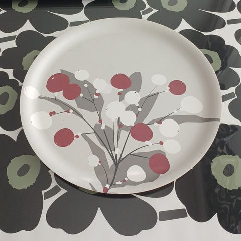 Myydään Muurlan kaunis lasinen servettiteline. Leveys 13 cm ja halkaisija 4 cm. Lasissa rusetin kuva. Hinta 4€.