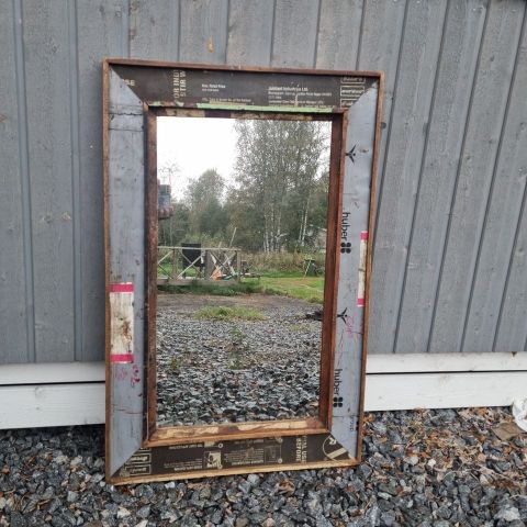 Peili, jossa on valkoinen kehys. Sopii seinälle ripustettavaksi ja tilan visuaaliseen laajentamiseen. Kor 68cm Lev 38cm postitus 7€