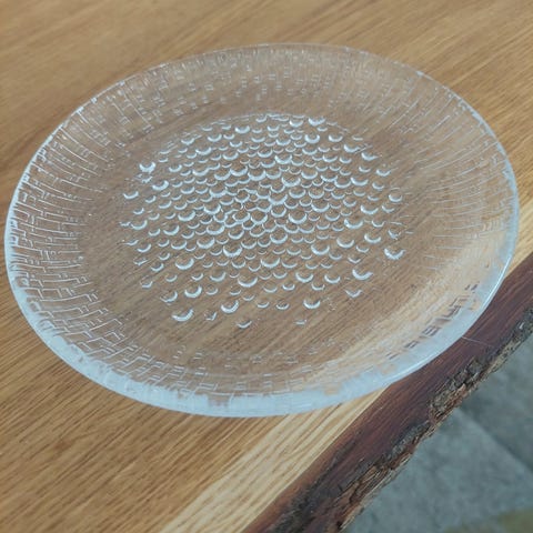 Kuvan mukaiset Tapio Wirkkalan suunnittelemat lasilautaset.