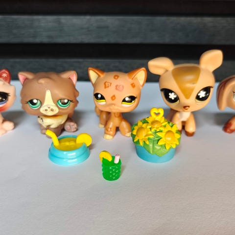Setti Littlest Pet Shop -figuureja. Osassa käytön jälkiä.