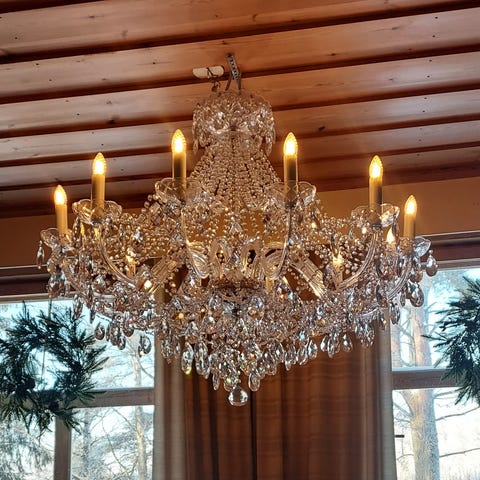 Erittäin näyttävä kristallikruunu.