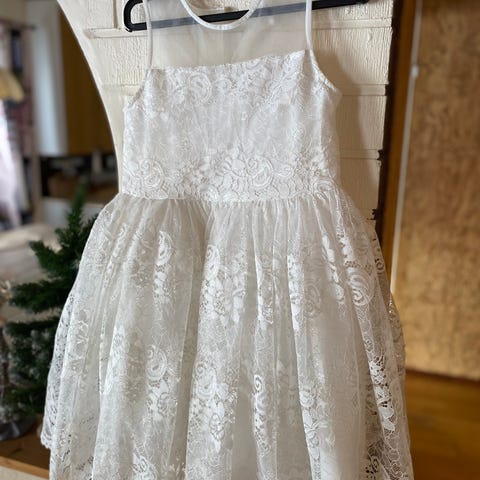 Todella laadukas ja pehmeä lasten mekko. Kerran käytetty vaan. Mekkoon ylä osa on joustava ja olkaimet säädettävä, joten sopii 146-164 kokoiselle.