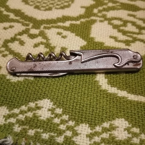 Linkkupuukko hyvässä kunnossa. Teräksinen ja vähän käytetty. Lusikka haarukka puukko purkinavaaja korkkiruuvi ja suojalevy systeemi. Näppärä pikkuretkelle.