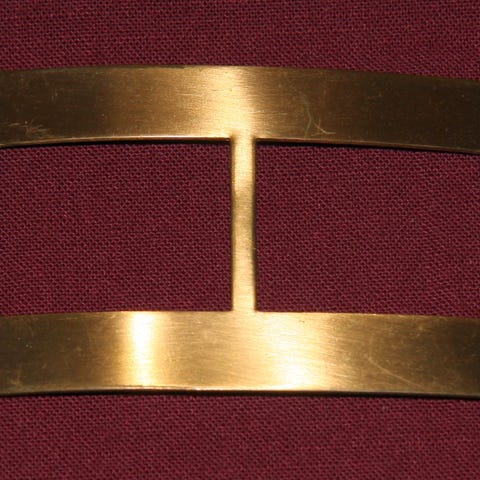 Käytetty, mutta edelleen kiiltävä metallinen vyön solki.