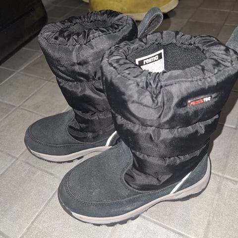 Hyväkuntoiset Reima talvikengät. Lämmin villavuori, helppo vetää jalkaan. Heijastavat yksityiskohdat ja irroitettava pohjallinen.