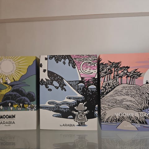 Kuvan Muumi -mukit Jouluyllätys vuodelta 2009 kaupan. Ehjät, mutta värit eivät ole enää kirkkaat. 30€/kpl tai tarjoa. Nouto Haminasta, myös postitus onnistuu.