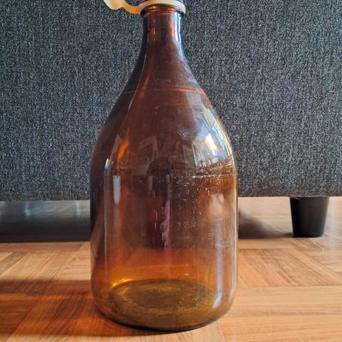 Kolme ruskeaa lasipulloa eri kokoisina vaikka koristekäyttöön.