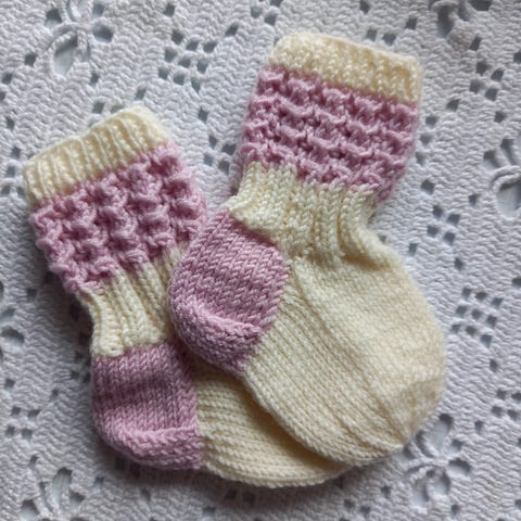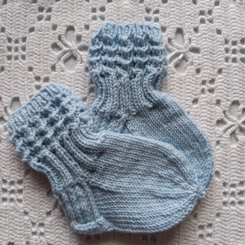 Käsintehty uudet vauvan pitsisukat laadukkaasta Dropsin Baby merino langasta.