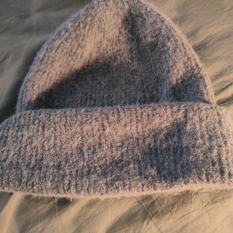 Samsoe pääasiassa alpakasta ja merinovillasta tehty pipo. Vaaleankeltainen.