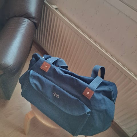 Koko: 40 cm * 40 cm * 10 cm. Kantokahvat. Tästä vaikka pukinkonttiin.