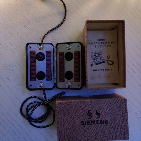 Vintage 1950v. Sveitsissä valmistettu partaterän terotin Allegro mod. L. Laatikon koko 13.5 x 8.5 x 4 cm
