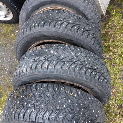 4kpl Toyotan vanhat talvirenkaat pölykapseleilla. 155/80 R13, 4x100mm