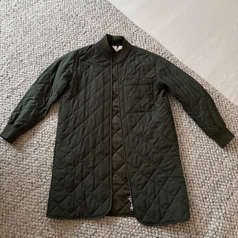 Arket takki kullanruskeassa värissä, koko 36. Koko on väljä, joten sopii hyvin paksumpikin villapaita alle. Takki on tikattu ja siinä on vetoketju. Hihansuissa ja kauluksessa on joustinneulosta.
