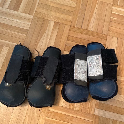 Myydään tarpeettomana vanhoja, mutta ehjiä ja pestyjä hivutus- ja jännesuojia. Koot shettis, pony, cob-pieni full.