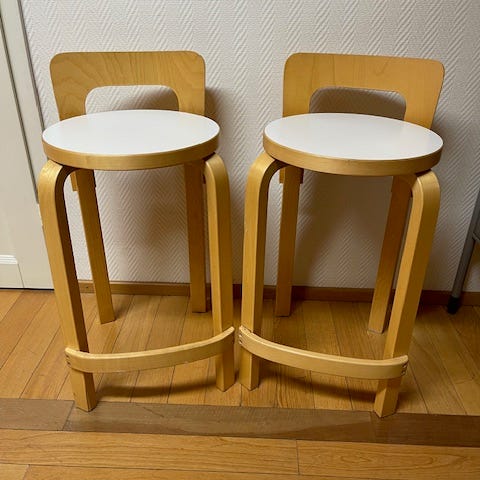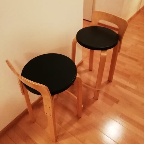 2kpl Artek K65 työtuoli / baarijakkara, koivu + musta linoleumi