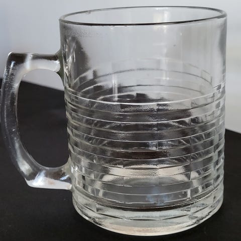 Myydään Riihimäen Lasin antiikkinen lasitarjotin paksua puristelasia 60-luvulta, 4,5 cm x 25 cm, hinta 10 eur.