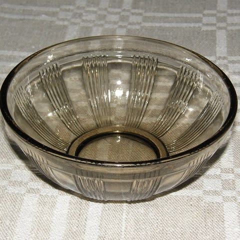 Sekä antiikkinen lasikulho paksua puristelasia 60-luvulta, 9 cm x 18 cm x 18 cm, hinta 10 eur.