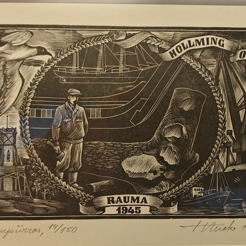 Kari Alajärven tekemä puutaideteos. Mitat kehyksineen, leveys 85cm ja korkeus 64cm.