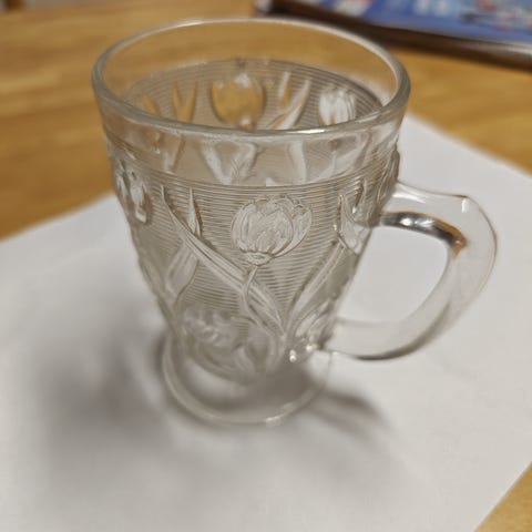 Saappaan muotoinen pieni tuoppi, jonka vetoisuus noin 3,5dl ja korkeus noin 16cm.