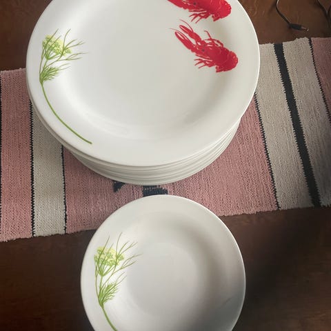Rapu, rapujuhla, rapujuhlat, Iittala, Iittalan, rapulautanen, lautaset, leipälautanen, leipälautaset.