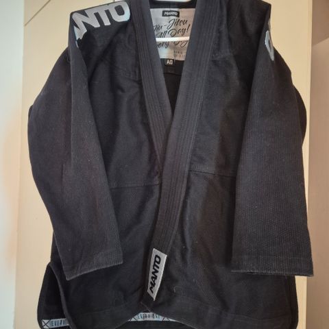 Täysin ehjä Manton A2 kimono ostettu käytettynä. Polvien kohalta värjäytynyt hieman tumman siniseksi ja muualtakin löytyy kohtia johon on tarttunut väri matosta.