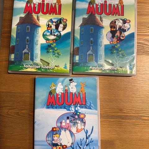 Muumit DVD-elokuvat sisältävät yhdeksän kappaletta eri jaksoja ja tarinoita Muumi-hahmoista. Setti sisältää erilaisia Muumi-aiheisia animaatioita, jotka sopivat kaikenikäisille katsojille. DVD-levyt ovat suomenkielisiä ja esittävät Muumilaakson maailmaa ja hahmoja. Myydään kaikki käytetyt ja uudet kerralla, kunto on varmaan välillä kohtalainen - uusi, pari kpl on avaamattomia mukaan extrana yhdet kannet ja kotelo