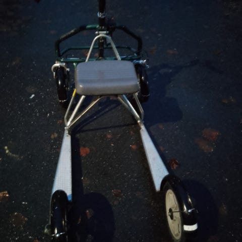 Esla potkupyörä. Muuten kunnnossa, mutta yksi rengas puhki.