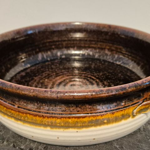 Kuvan Kustavin Savipajan mustikanvärinen uunivuoka/tarjoiluastia, halkaisija 22cm ja korkeus 10,5cm. Savuton ja eläimetön koti. Nouto.