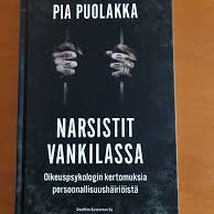 Pia Puolakka kirjoittama kirja Narsistit Vankilassa, joka käsittelee oikeuspsykologin kertomuksia persoonallisuushäiriöistä. Kirja on suomenkielinen ja sen kansi on musta, jossa on kuva käsistä ja vankilan kaltereista.