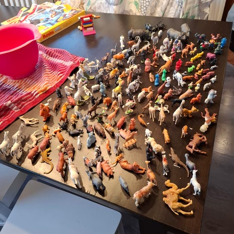 Vanhat muovieläimet. Tässä setissä ei kaikkein yleisimmästä muttei harvinaisimmastakaan päästä valikoima muovieläimiä.